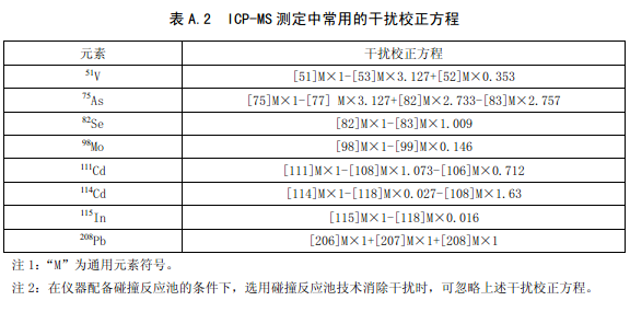 表A.1 給出了 ICP-MS 測(cè)定中常見的多原子離子干擾,表A.2 給出了常用的干擾校正方程。
