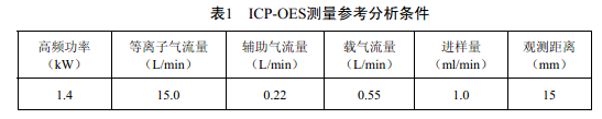 采用儀器生產(chǎn)廠家推薦的儀器工作參數(shù)。表1 給出了測(cè)量時(shí)參考分析條件。