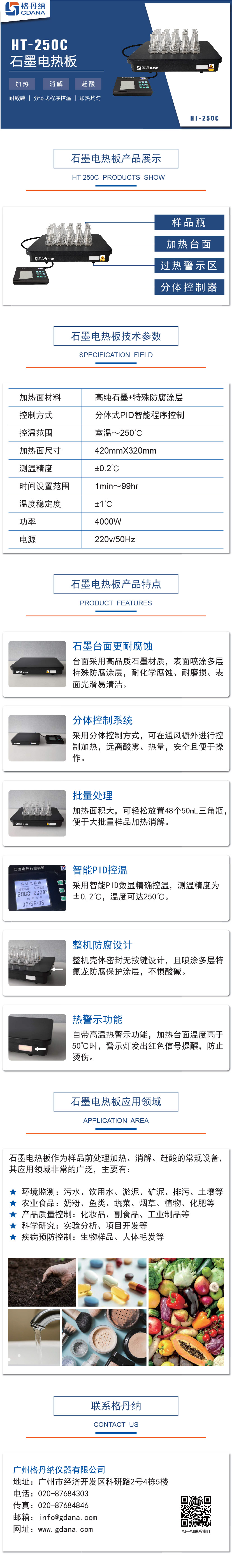 HT-250C石墨電熱板是用于化學(xué)試驗(yàn)室樣品前處理中進(jìn)行加熱、消煮、趕酸用的常規(guī)實(shí)驗(yàn)設(shè)備。