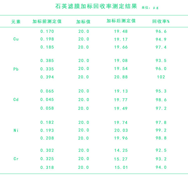石英濾膜加標(biāo)回收率測(cè)定結(jié)果