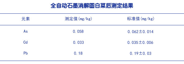 全自動(dòng)石墨消解圓白菜后測定結(jié)果