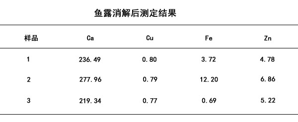 將三種品牌魚(yú)露通過(guò)上述的消解步驟進(jìn)行前處理得出結(jié)果如下列表格所示。