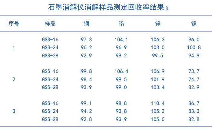 (2)由圖表3、圖表4可以看出三種程序消解樣品的土壤重金屬銅、鉛、鋅都有很好的消解回收,但是第一種程序對重金屬鎳的回收好,對土壤標準物質GSS-16、GSS-24和GSS-28的回收率分別達到了96.0%、100.1%和94.9%。