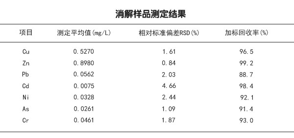 隨著經濟的發展,各種生活、工業、化工等垃圾問題越來越嚴重,垃圾回收、處理也成為一個問題,特別是垃圾中含有重金屬對環境的影響,甚至對人類健康造成了影響,下列實驗是研究垃圾滲濾液中含有銅、鉛、鎘、鋅、鎳、砷、鉻等多種重金屬元素。通過采用電熱板法消解方法對某地區垃圾滲透液中重金屬含量進行測定,并對測定結果進行比較分析,為研究垃圾滲濾液重金屬測定時選取適合的消解方法提供參考。