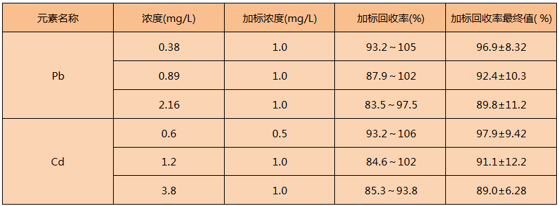 從表中得知,實驗方法測定樣品的準確度結果滿足實驗要求,該方法適用于固體廢物的消解。