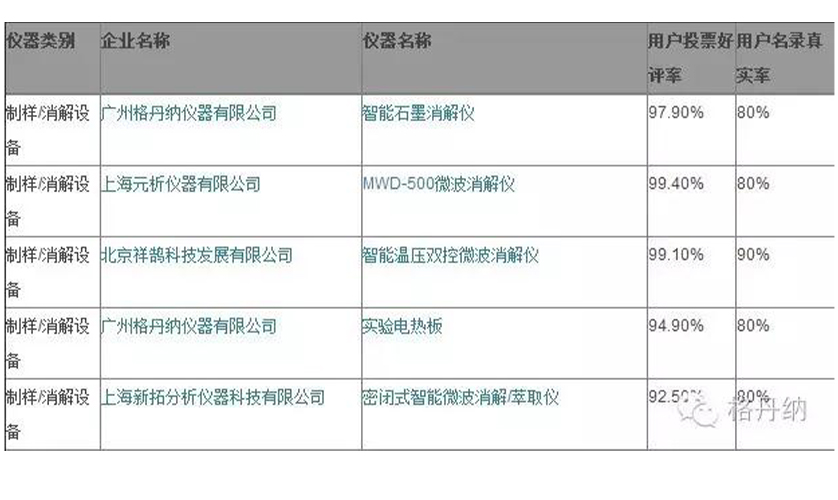 格丹納參加了2016年由中國儀器儀表行業協會指導、儀器信息網主辦的第二屆“國產好儀器”活動,在活動中憑借廣大用戶的愛戴與支持在一百多家企業中參報的國產樣品前處理設備項目:制樣/消解設備中以DS-360石墨消解儀、HT實驗電熱板兩款儀器成功入圍評選。